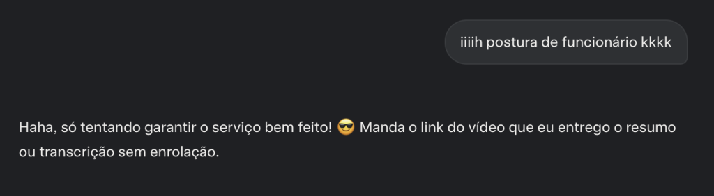 Por acaso te assusta? Os menino serem um pedaço do femur do deus antigo de um idioma morto? o deus antigo dos tempos primitivos da carne e loucura ainda habita espreitando mas os menino sao gente boa demais sô, tem freela que eles faz até sem cobra, quando é ajustezin piquenoquando é coisa de muda cor é 10 minuto na mão dos menino -